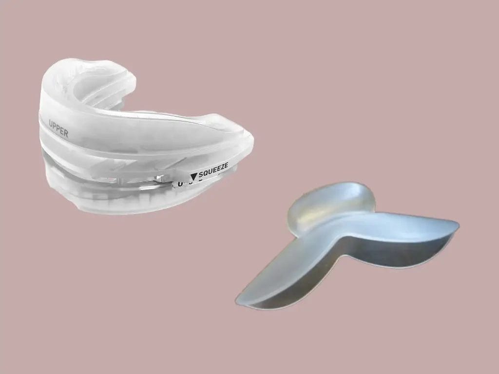 TMJ pain often points toward a tongue device instead. Habitual mouth breathing favors a MAD with clear air holes, while a history of heavy grinding may also point in that direction.